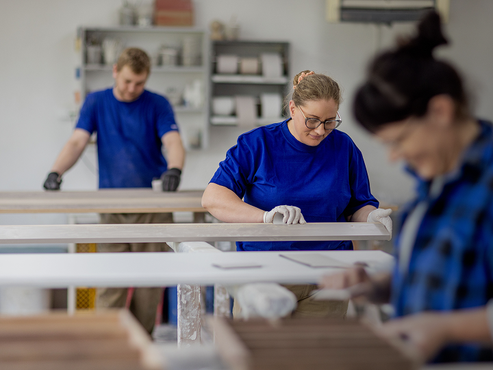 Nasz zespół tworzą mistrzowie w swoim fachu – stolarze, lakiernicyi montażyści. To ludzie, na których można liczyć.Łączy ich doświadczenie, precyzja i pasja do detalu.